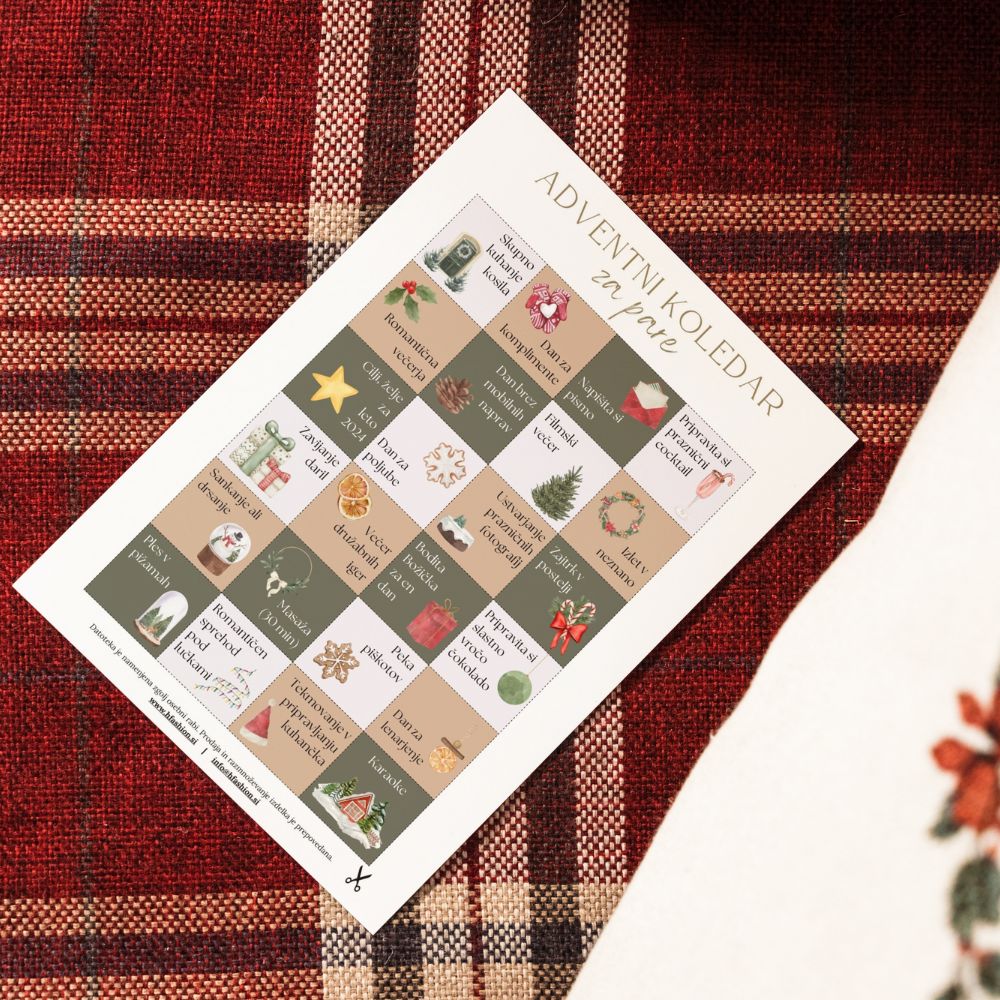 Adventni koledar za pare je lahko v decembru en tak opomnik, da se vmes med celotnim kaosom ne izgubita. Da vsak dan najdeta droben trenutek samo zase, za vaju.